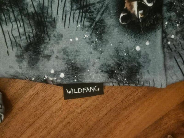 Hoodie in Größe 86 mit Kapuze im coolen Waschbärdesign und Schriftzug.